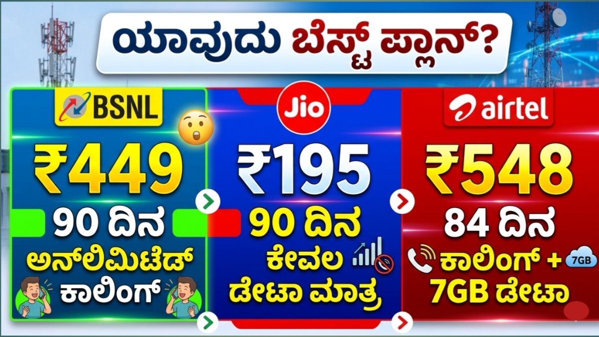 Best recharge plan’s : ಜಿಯೋ, ಏರ್ಟೆಲ್ ಹಾಗೂ BSNL ಗಳ ಈ ಮೂರರಲ್ಲಿ 90 ದಿನದ ವ್ಯಾಲಿಡಿಟಿ.! ಯಾವುದು ಸೂಕ್ತ? ಪ್ರತಿ ತಿಂಗಳು ಮೊಬೈಲ್ ರೀಚಾರ್ಜ್ ಮಾಡುವ ಕಿರಿಕಿರಿ ನಿಮಗೂ ತಿಳಿದಿರುತ್ತದೆಯೇ? “ನಿಮ್ಮ ಪ್ಲಾನ್ ಮುಗಿದಿದೆ, ರೀಚಾರ್ಜ್ ಮಾಡಿ” ಎಂಬ ಮೆಸೇಜ್ಗಳು ಬಂದು ತೊಂದರೆ ಕೊಡುತ್ತವೆಯೇ? ಅಂಗಡಿಗೆ ಹೋಗುವುದು ಅಥವಾ ಆನ್ಲೈನ್ನಲ್ಲಿ ಪುನಃ ಪುನಃ ಪಾವತಿ ಮಾಡುವುದು ಬೇಸರ ತರುತ್ತದೆಯೇ? ಹಾಗಿದ್ದರೆ ಒಂದು ರೀಚಾರ್ಜ್ ಮಾಡಿದರೆ ಸುಮಾರು ಮೂರು ತಿಂಗಳು (90 ದಿನಗಳು) ಟೆನ್ಷನ್ ಫ್ರೀ … Read more