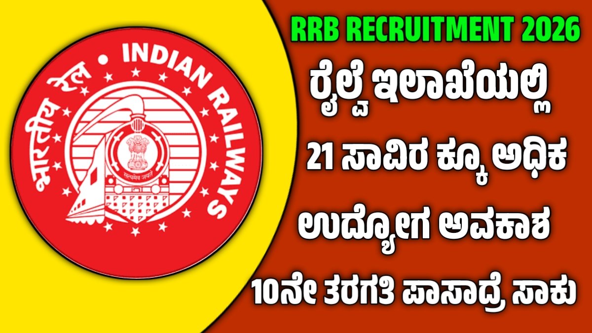 Railway Recruitment 2026 : ರೈಲ್ವೆ ಇಲಾಖೆಯಲ್ಲಿ 21000 ಕ್ಕೂ ಹೆಚ್ಚಿನ ಹುದ್ದೆಗಳಿಗೆ ಅರ್ಜಿ ಪ್ರಾರಂಭ..! 10ನೇ ತರಗತಿ ಪಾಸಾದರೆ ಸಾಕು.   ನಮಸ್ಕಾರ ಸ್ನೇಹಿತರೆ ಕರ್ನಾಟಕದ ಜನತೆಗೆ ಲೇಖನದ ಮುಖಾಂತರ ತಿಳಿಸಲು ಬಯಸುವ ವಿಷಯವೇನೆಂದರೆ. ಭಾರತದ ರೈಲ್ವೆ ಇಲಾಖೆಯಲ್ಲಿ 21,997 ಗ್ರೂಪ್ ಡಿ ಹುದ್ದೆಗಳಿಗೆ ಅರ್ಜಿ ಪ್ರಾರಂಭ ಮಾಡಲಾಗಿದೆ ಈ ಹುದ್ದೆಗಳಿಗೆ ಕೇಂದ್ರ ಸರ್ಕಾರದ ಉದ್ಯೋಗಕ್ಕಾಗಿ rrbapply.gov.in ವೆಬ್ಸೈಟ್ನ ಮೂಲಕ ಅರ್ಜಿ ಸಲ್ಲಿಸಬಹುದಾಗಿದೆ ಜನವರಿ 31 ರಿಂದ ಮಾರ್ಚ್ 2ರವರೆಗೆ ಅರ್ಜಿ ಸಲ್ಲಿಸಲು ಅವಕಾಶವಿರುತ್ತದೆ. ವಯೋಮಿತಿ … Read more