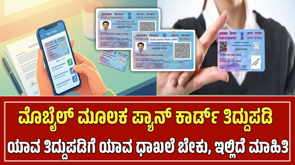PAN Card correction : ಮೊಬೈಲ್ ಮೂಲಕ ಪ್ಯಾನ್ ಕಾರ್ಡ್ ತಿದ್ದುಪಡಿ ಮಾಡಿಕೊಳ್ಳಲು ಅವಕಾಶ..! ಯಾವೆಲ್ಲ ತಿದ್ದುಪಡಿ ಮಾಡಬಹುದು ಇಲ್ಲಿದೆ ಸಂಪೂರ್ಣ ಮಾಹಿತಿ.